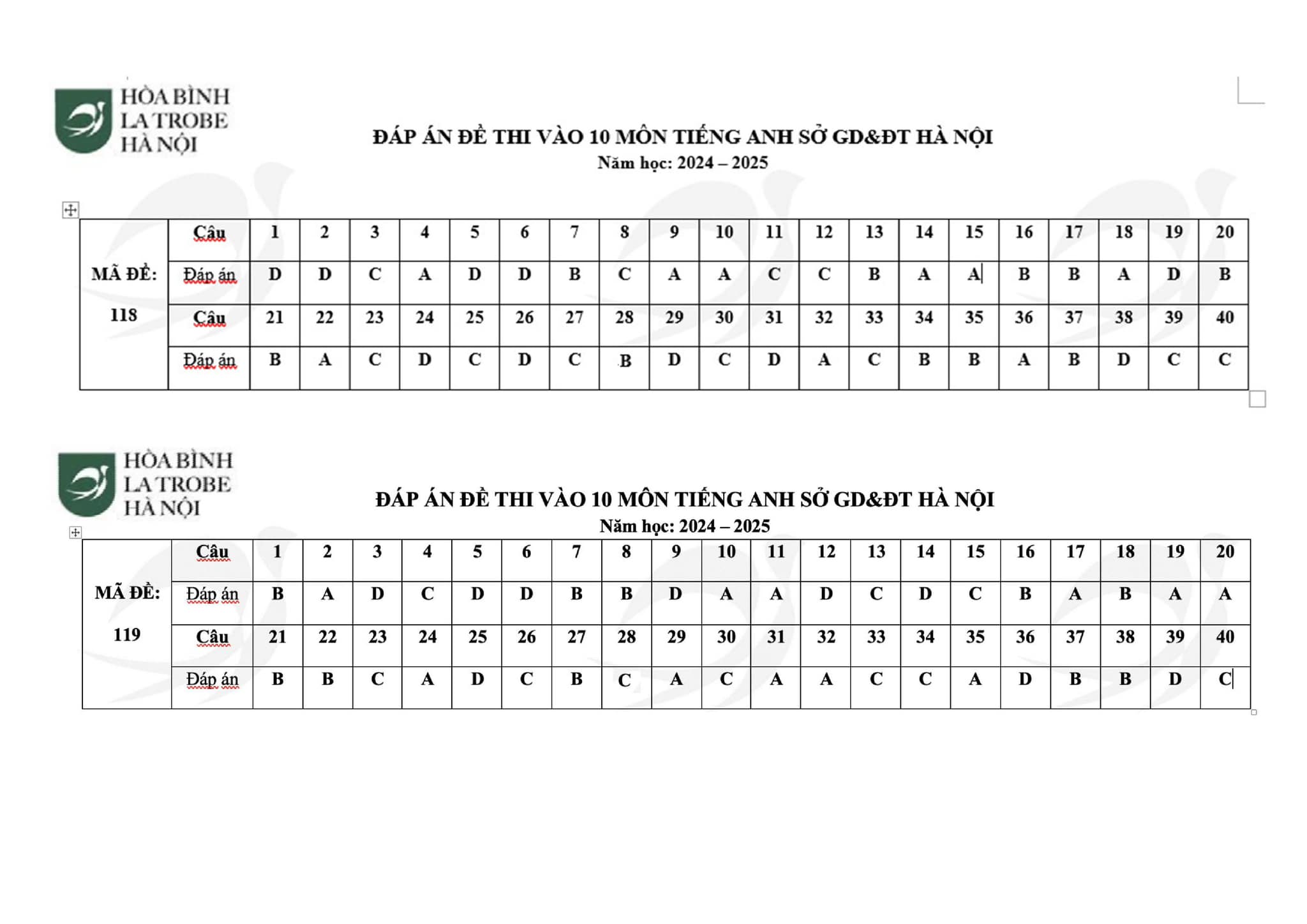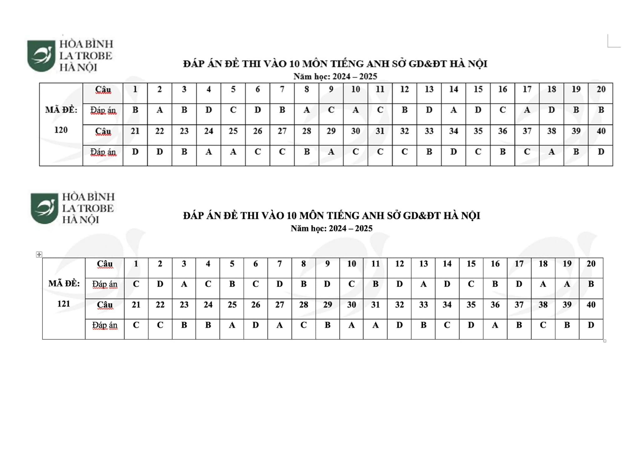 Dưới đây là gợi ý đáp án chi tiết môn Tiếng Anh thi vào lớp 10 do đội ngũ giáo viên của trường THPT Hòa Bình – La Trobe – Hà Nội thực hiện. Quý Phụ huynh và các bạn học sinh có thể tham khảo!