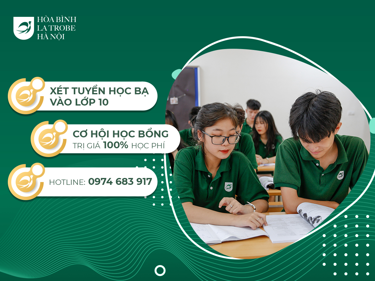 Tham gia vào chương trình xét tuyển thẳng của Hòa Bình – La Trobe – Hà Nội, ngoài cơ hội được tài trợ học phí các mức 50% và 100% cho lộ trình xuyên suốt 3 năm, các em học sinh còn có cơ hội được tiếp cận với chương trình giáo dục toàn diện từ Tri thức – Kỹ năng – Thể chất - Nghệ thuật. Các chương trình giảng dạy của nhà trường được thiết kế phù hợp với định hướng giáo dục, thông qua hợp tác liên kết với các trường ĐH hàng đầu: ĐH Hà Nội, ĐH Bách Khoa Hà Nội, ĐH Sư phạm Hà Nội, ĐH FPT Greenwich... Đặc biệt, 01 lớp 10 chuyên Anh sẽ được tổ chức vào năm học 2021 – 2022 tại trường dành cho những học sinh có năng lực xuất sắc trong môn tiếng Anh. Các em học sinh sẽ được học trực tiếp IELTS với các giảng viên ĐH Hà Nội và giáo viên bản ngữ giàu kinh nghiệm. Đối tượng học sinh lớp chuyên Anh hướng của trường tới là: