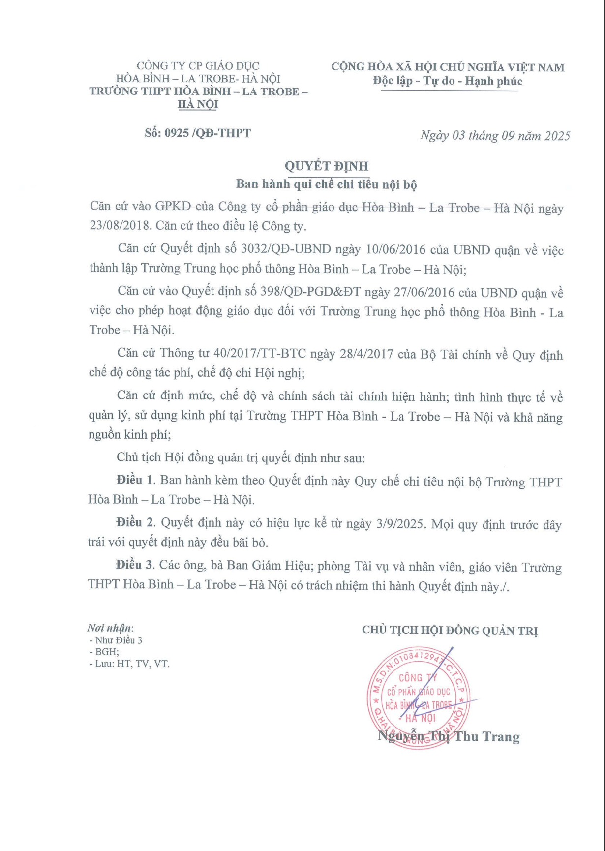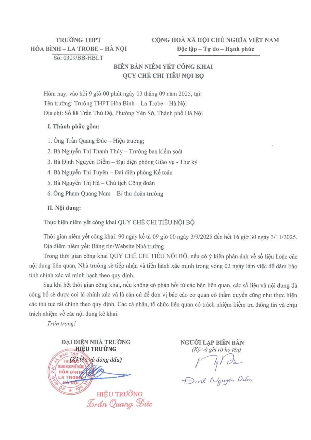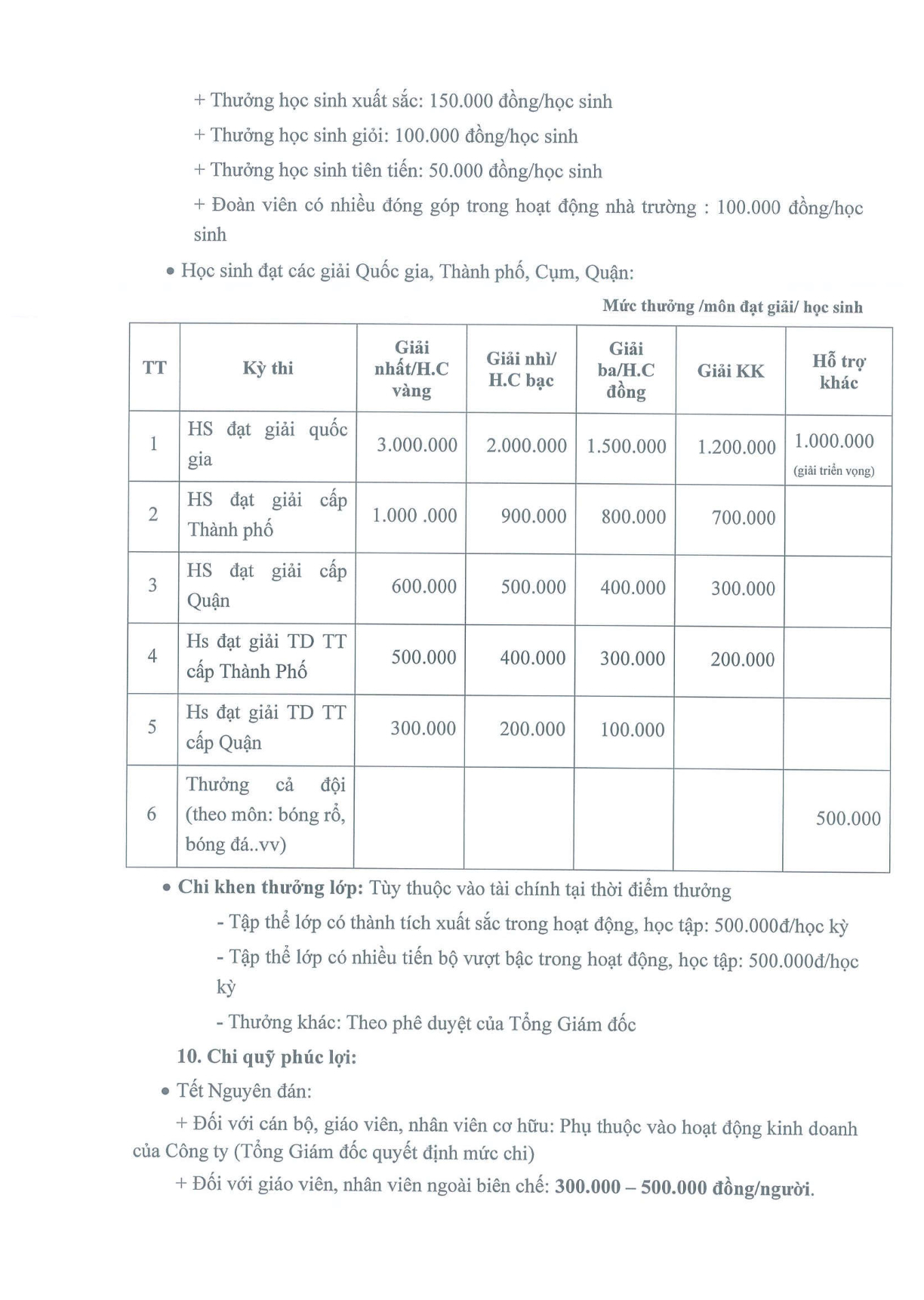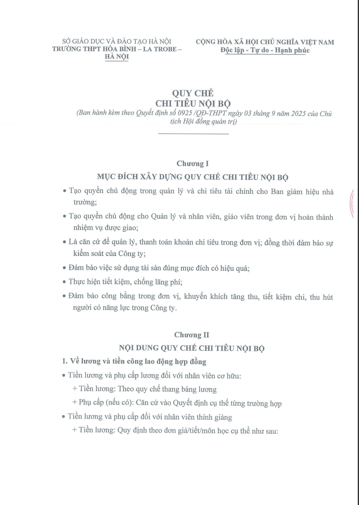 Nhà trường công khai quy chế chi tiêu nội bộ năm học 2025-2026, thông tin như sau: