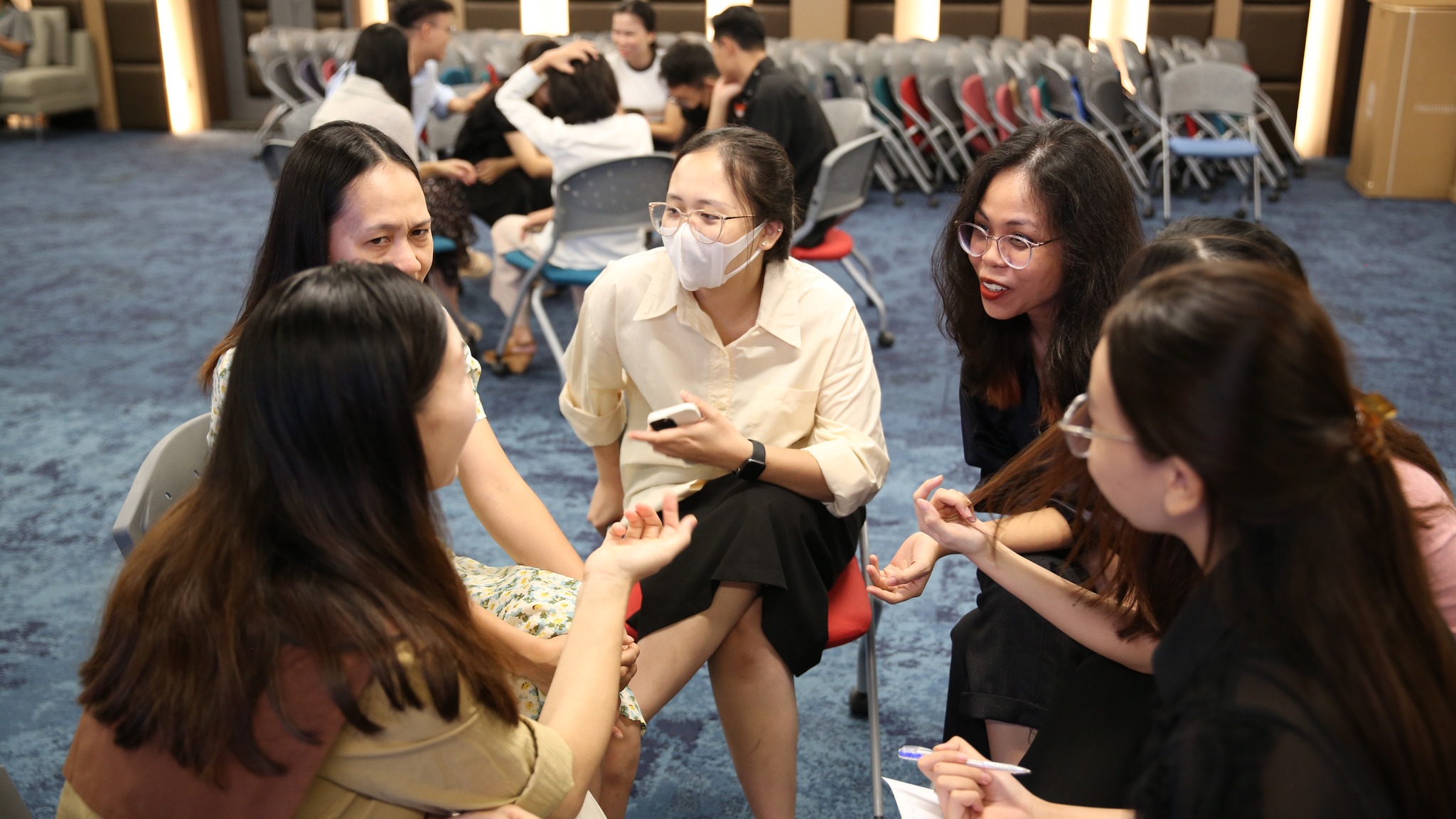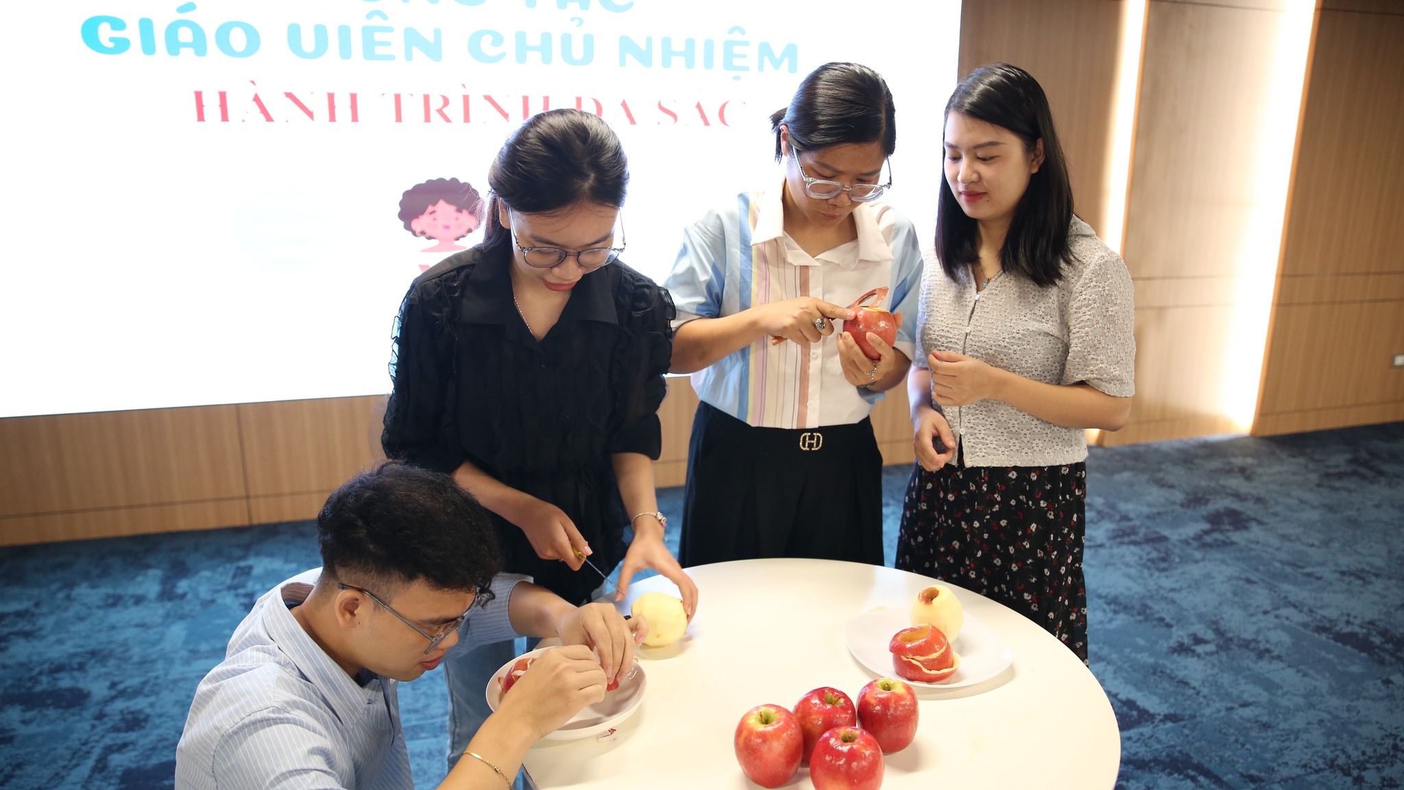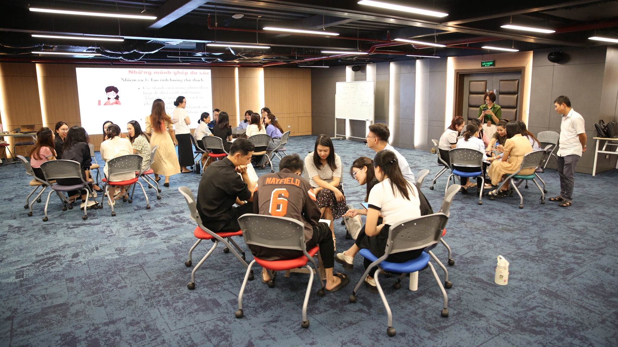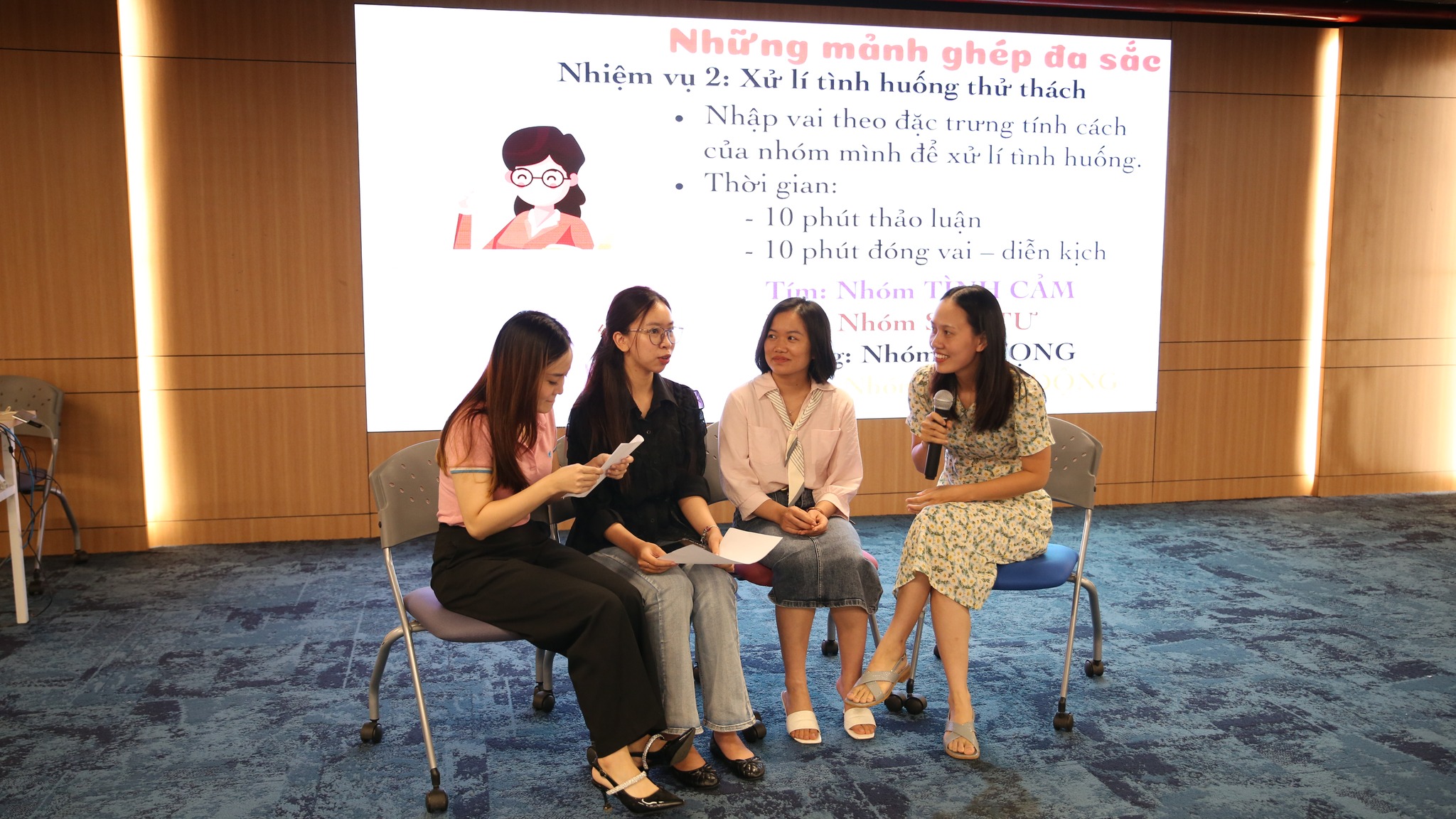 Mỗi giáo viên được hoá thân thành những tính cách riêng biệt với những màu sắc đại diện như: Tím (nhóm tình cảm), Nâu (nhóm suy tư), Trắng (nhóm kỳ vọng), Cam (nhóm hành động). Buổi đào tạo trở thành cơ hội kết nối tập thể giáo viên của Nhà trường với những hoạt động nhóm sôi nổi, những thông điệp quý báu về “hành trình rực rỡ sắc màu” của nghề giáo.