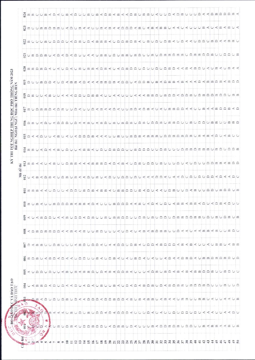 Bộ Giáo dục và Đào tạo công bố đáp án các môn thi trắc nghiệm trong Kỳ thi tốt nghiệp trung học phổ thông năm 2023