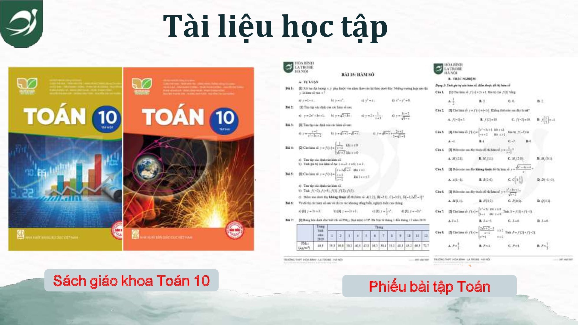 Chương trình học môn Toán khối 10 tại trường Hoà Bình - La Trobe - Hà Nội hiện nay xoay quanh các mạch kiến thức về Đại số, Giải tích, Hình học, Xác suất - Thống kê. Phương pháp dạy học môn Toán của nhà trường hiện nay đều ứng dụng CNTT trong dạy và học, gắn môn Toán với thực tiễn thông qua các dự án: