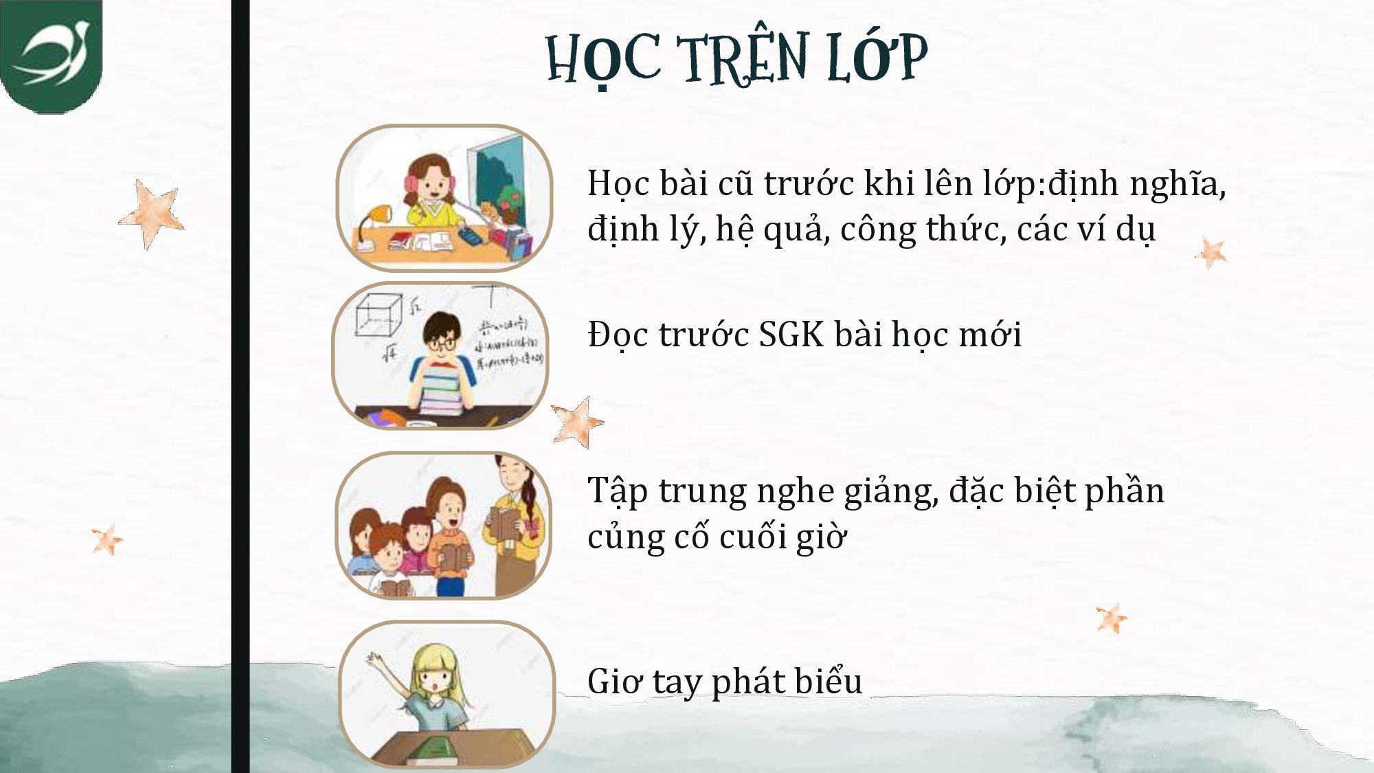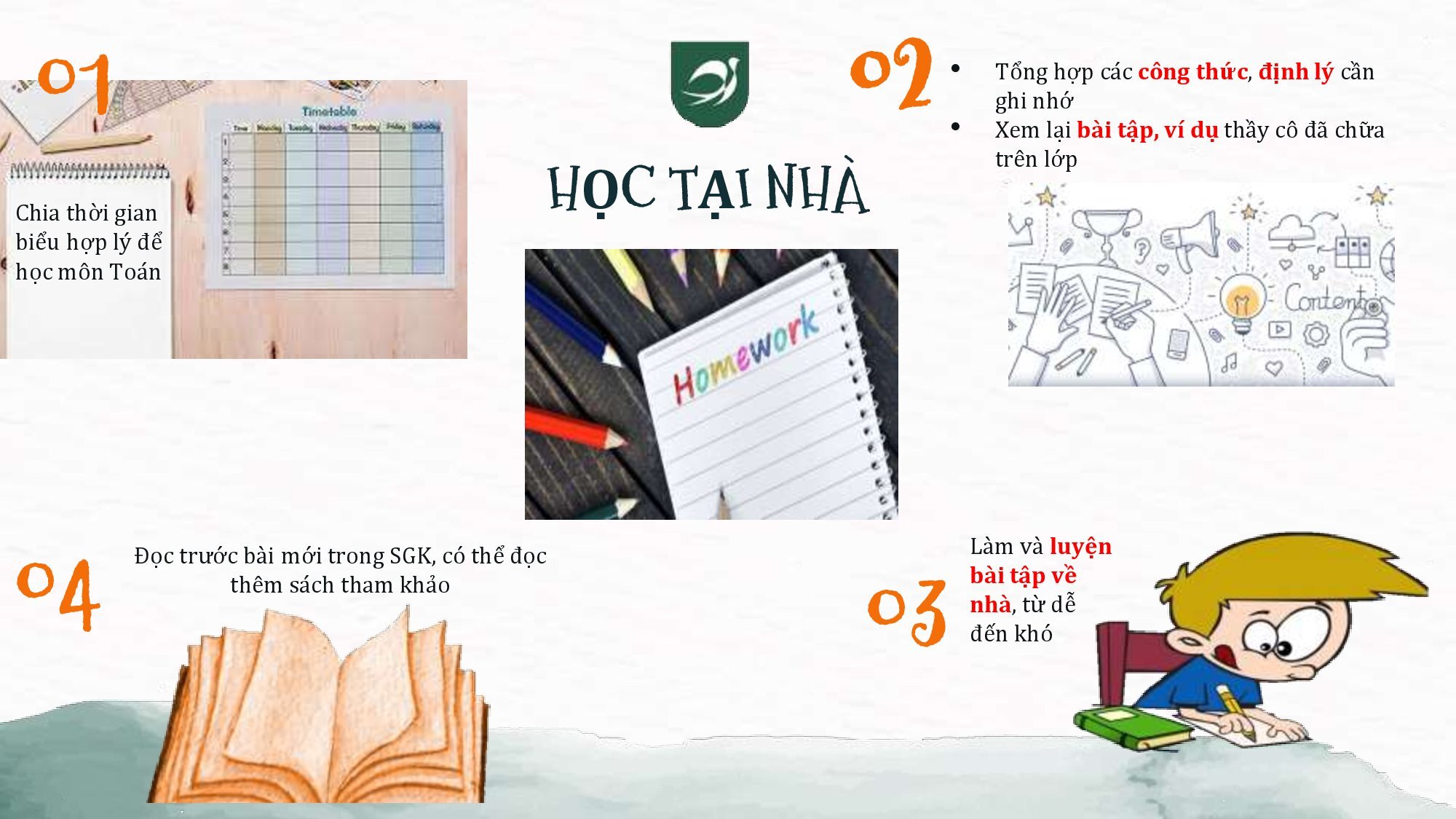 Để đạt hiệu quả học tập tốt nhất ở môn Toán, các em học sinh của Hoà Bình - La Trobe - Hà Nội còn được giáo viên định hướng phương pháp học tập TẠI NHÀ và TRÊN LỚP một cách khoa học: