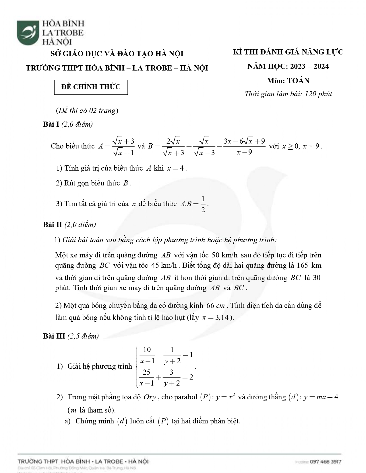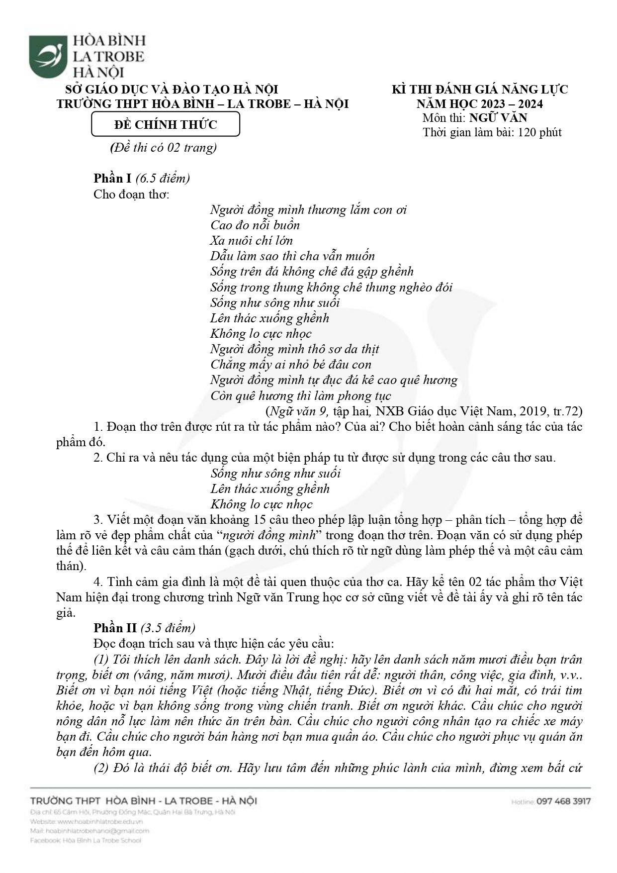 Ngày 17/3, Trường THPT Hòa Bình - La Trobe - Hà Nội tổ chức kỳ thi đánh giá năng lực đợt 1 nhằm giúp học sinh và phụ huynh hiểu rõ hơn về quá trình học tập một cách toàn diện và sâu sắc.