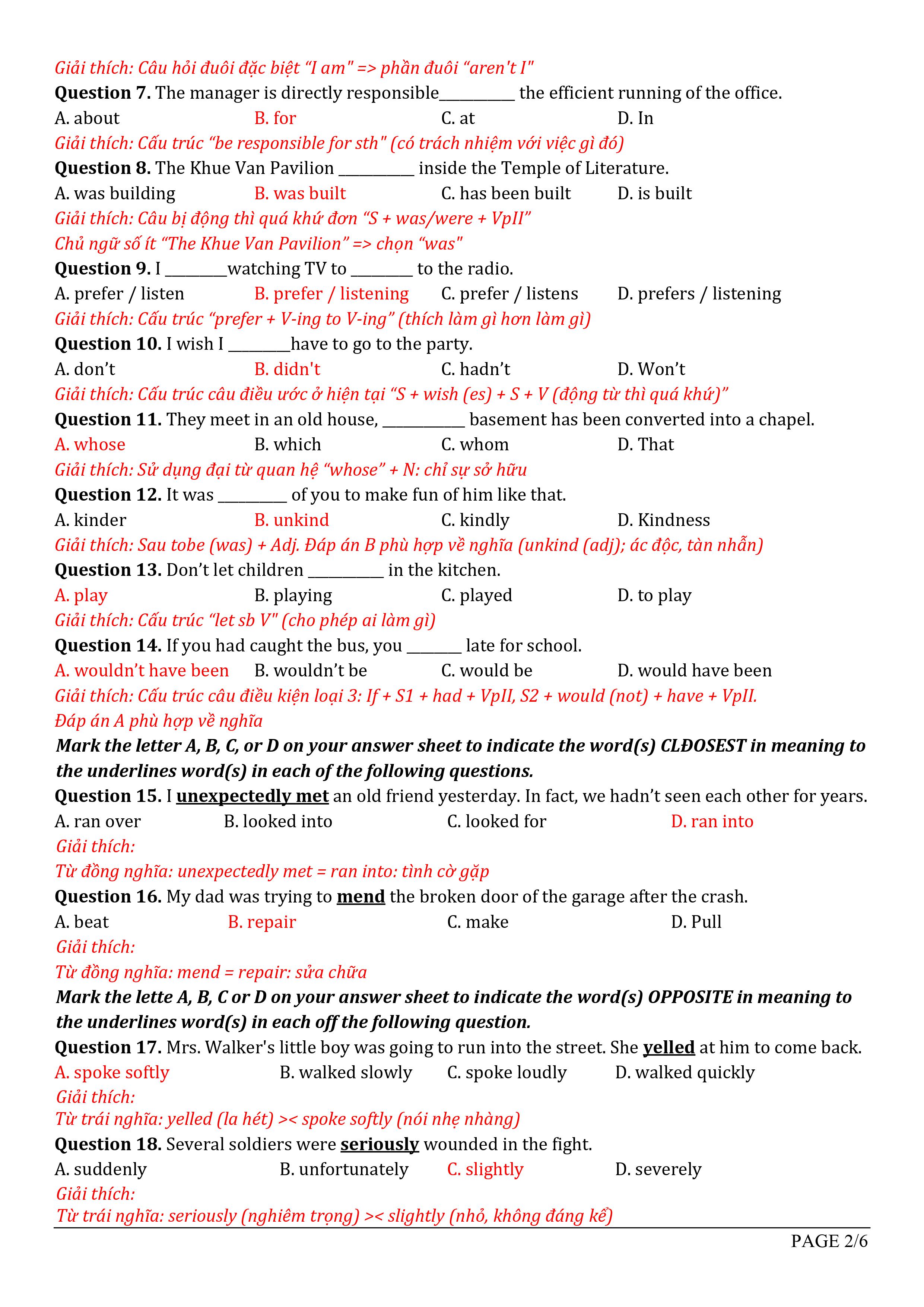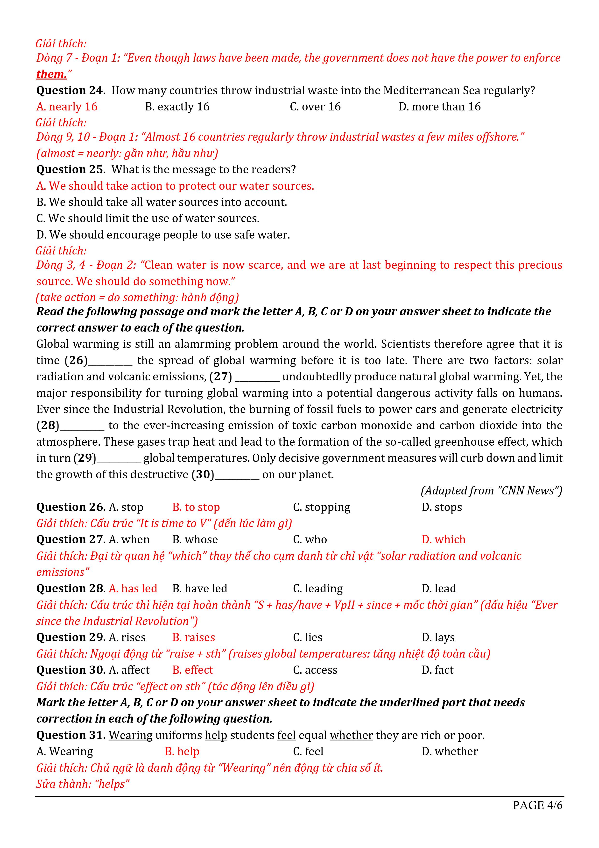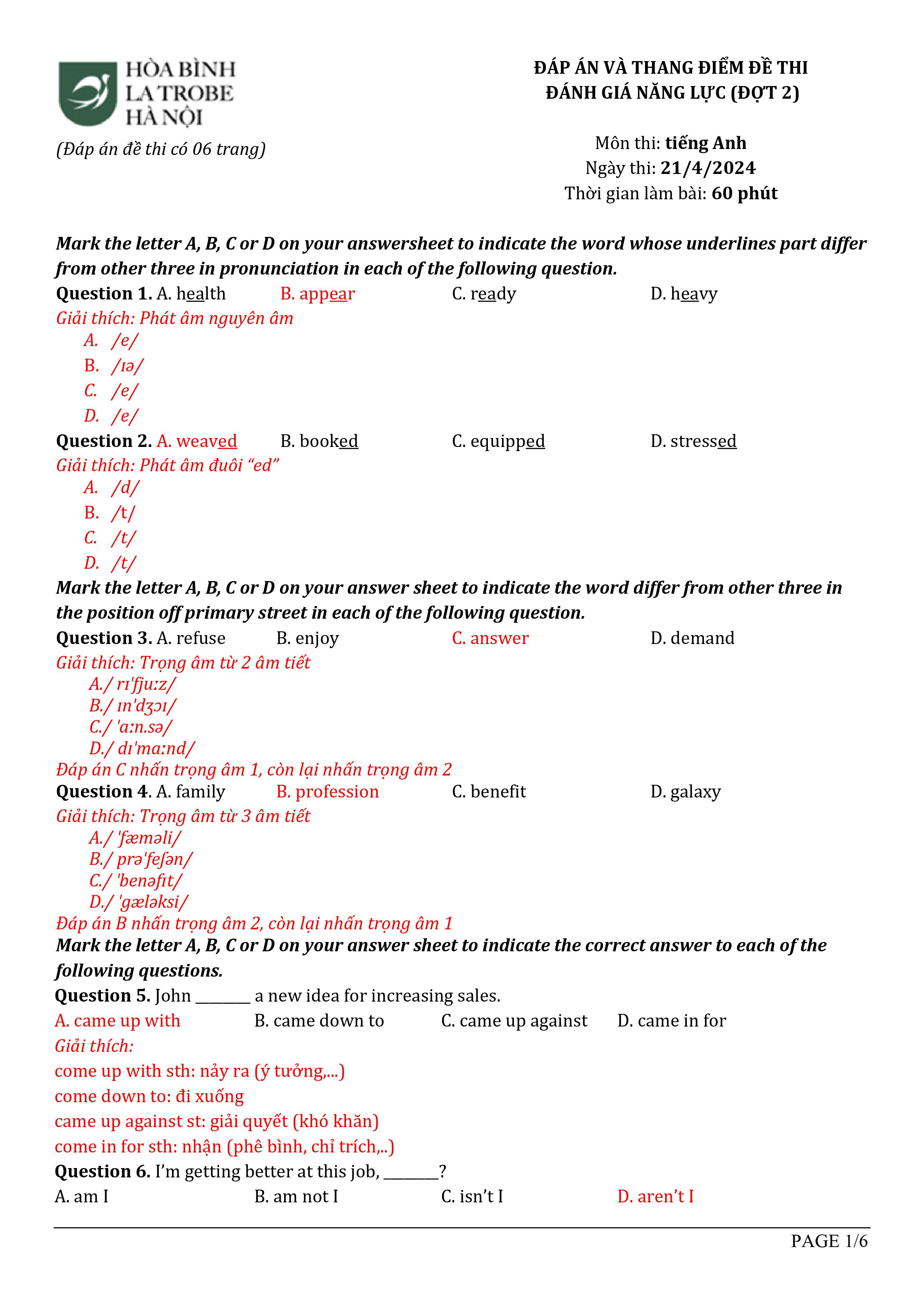 Đáp án môn Tiếng Anh
