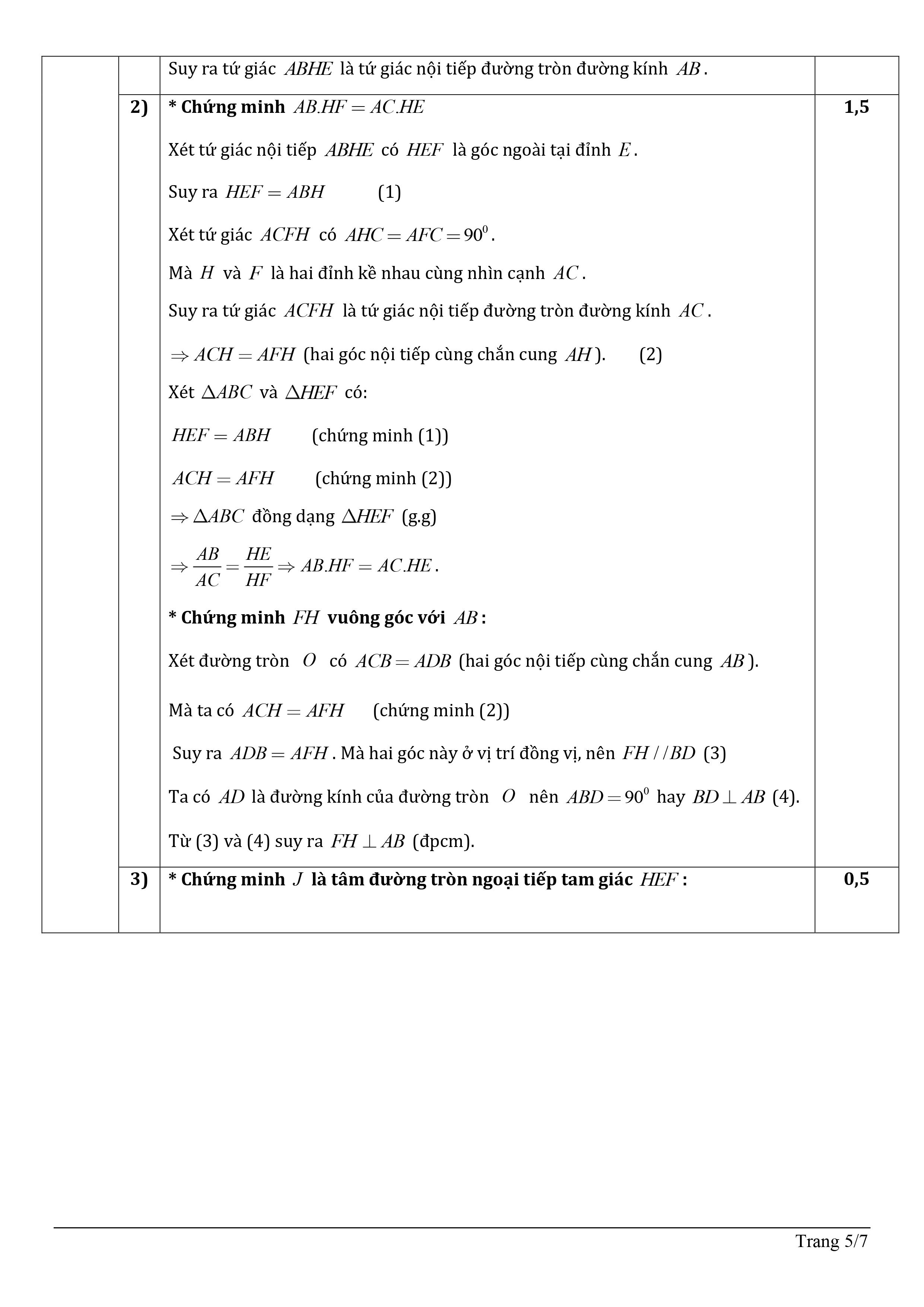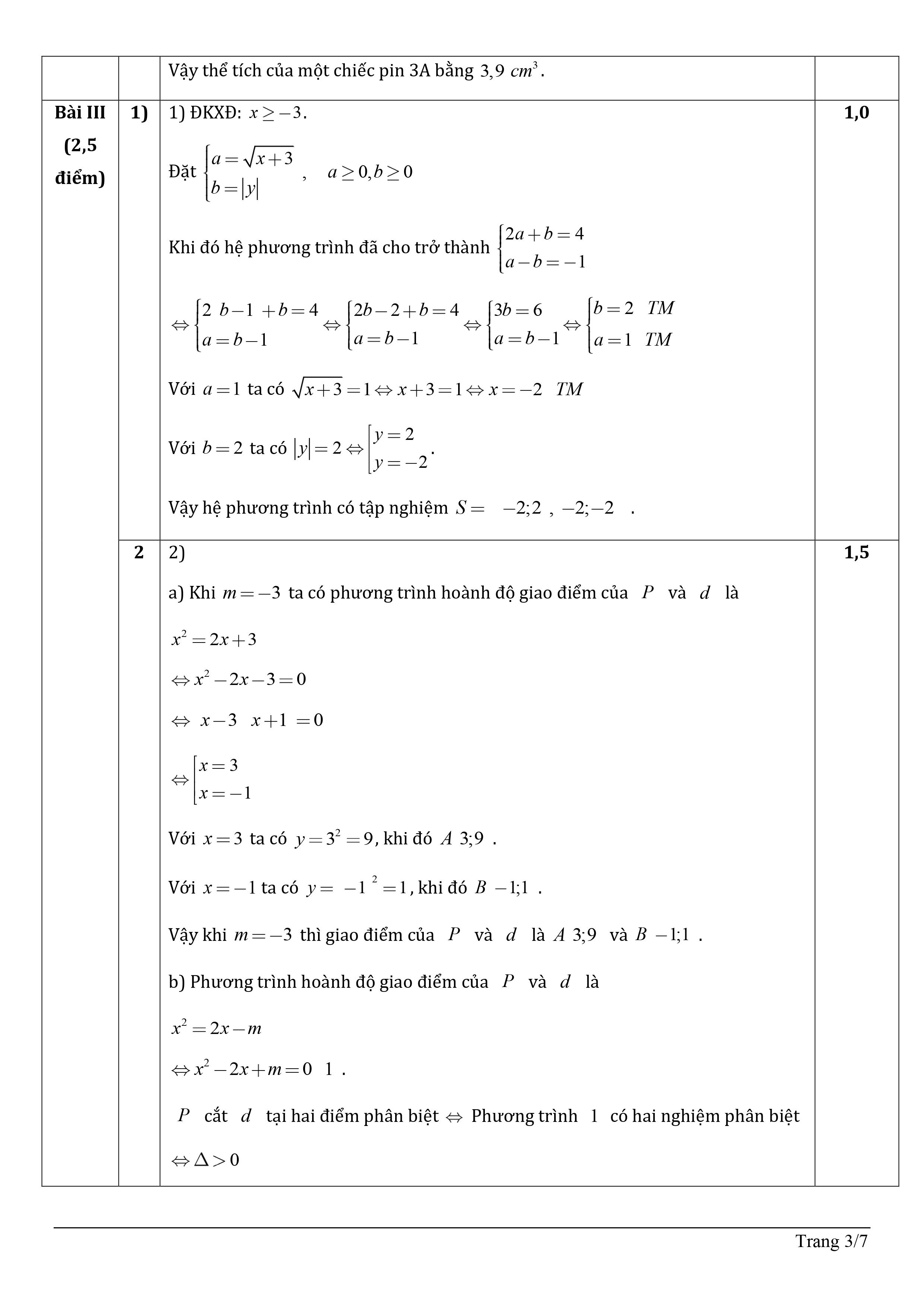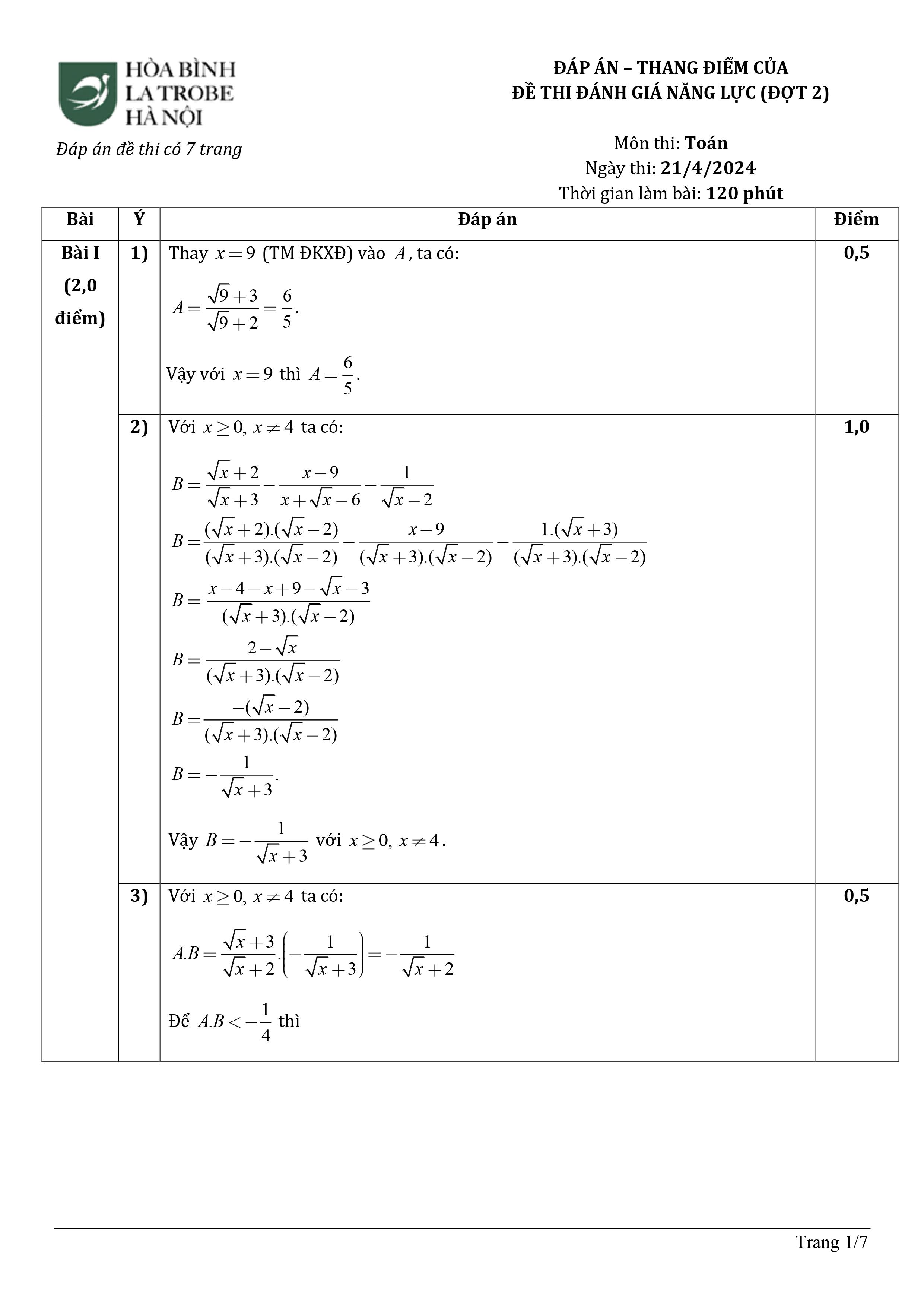 Đáp án môn Toán