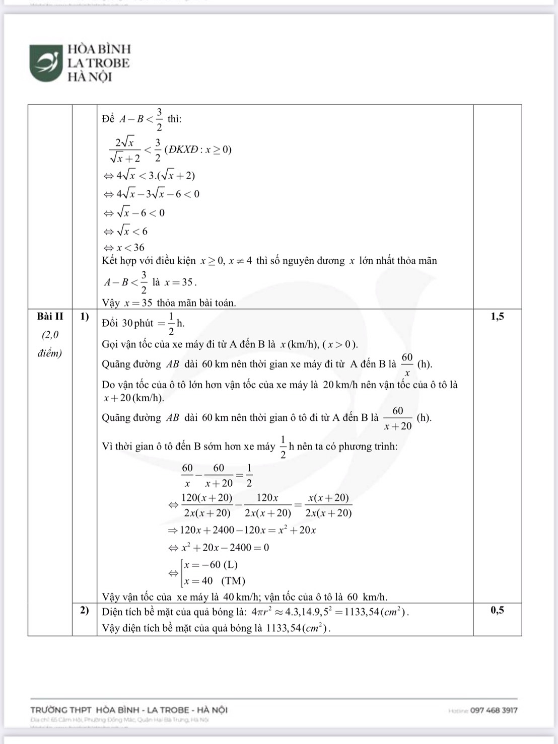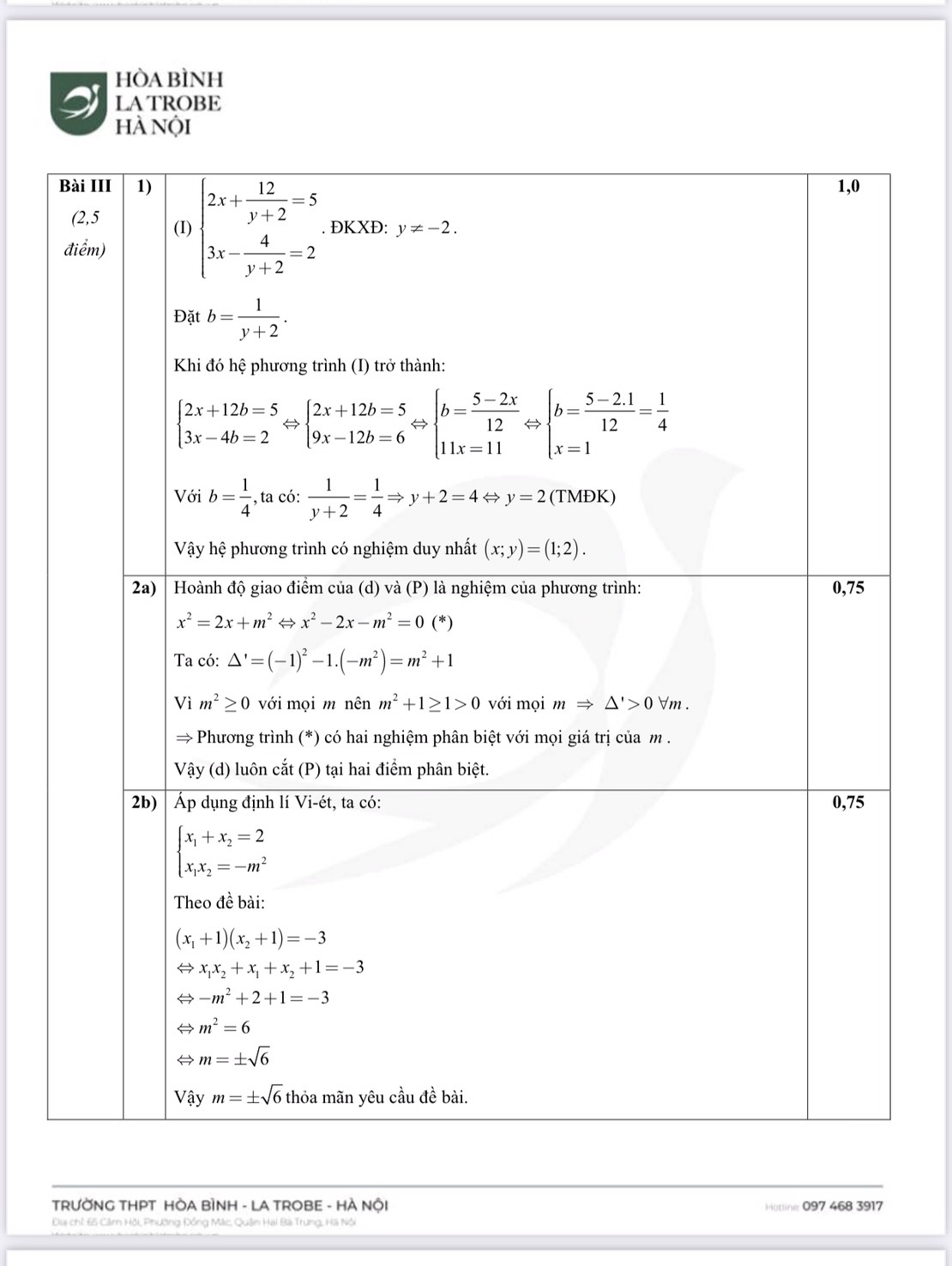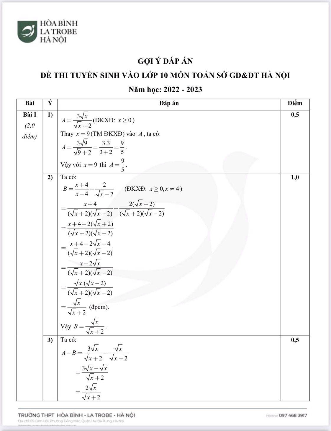 Dưới đây là nhận xét đề thi và gợi ý đáp án môn Toán thi vào lớp 10 do giáo viên của trường Hòa Bình – La Trobe – Hà Nội thực hiện. Các em học sinh và quý phụ huynh có thể tham khảo!