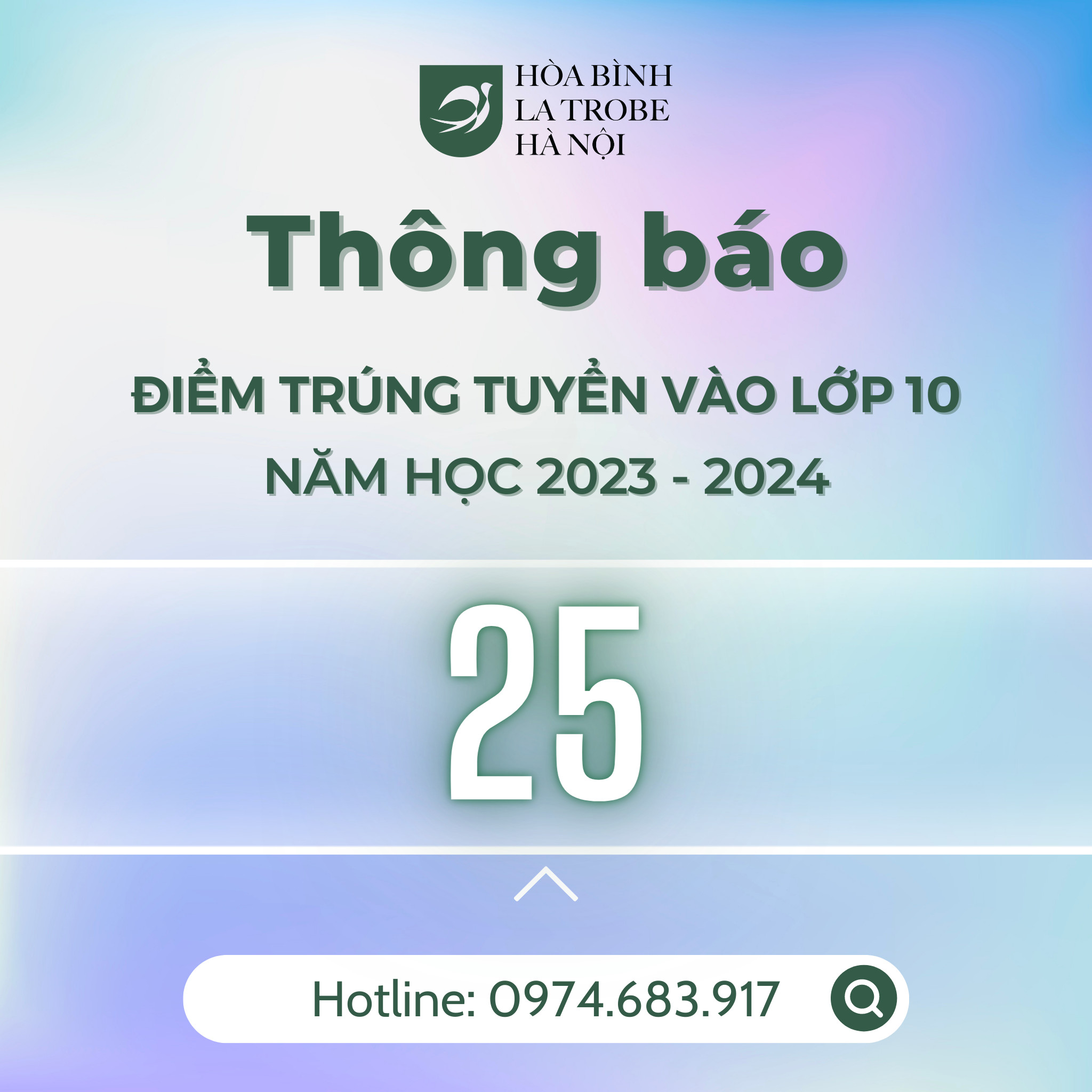 - Điểm chuẩn lớp 10 năm học 2023-2024: 25 điểm.