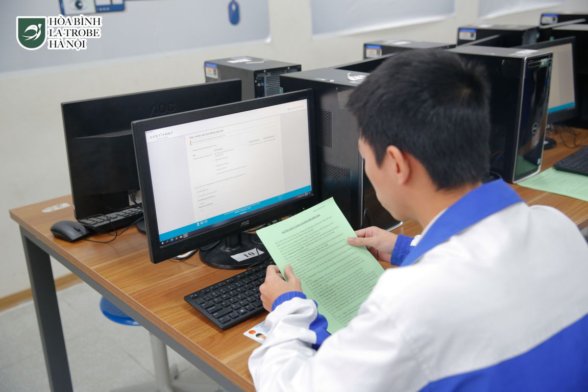Kỳ thi MOS tại trường Hòa Bình – La Trobe – Hà Nội đã diễn ra an toàn, nghiêm túc, các thí sinh tuân thủ đúng theo quy định làm bài thi của Microsoft. Toàn bộ các thí sinh trước khi vào phòng thi đều được kiển tra chứng nhận nhân thân (lấy dấu vân tay, chụp ảnh…), kiểm tra an ninh kỹ lưỡng nhằm đảm bảo không có bất cứ thiết bị điện tử nào được mang vào phòng thi.