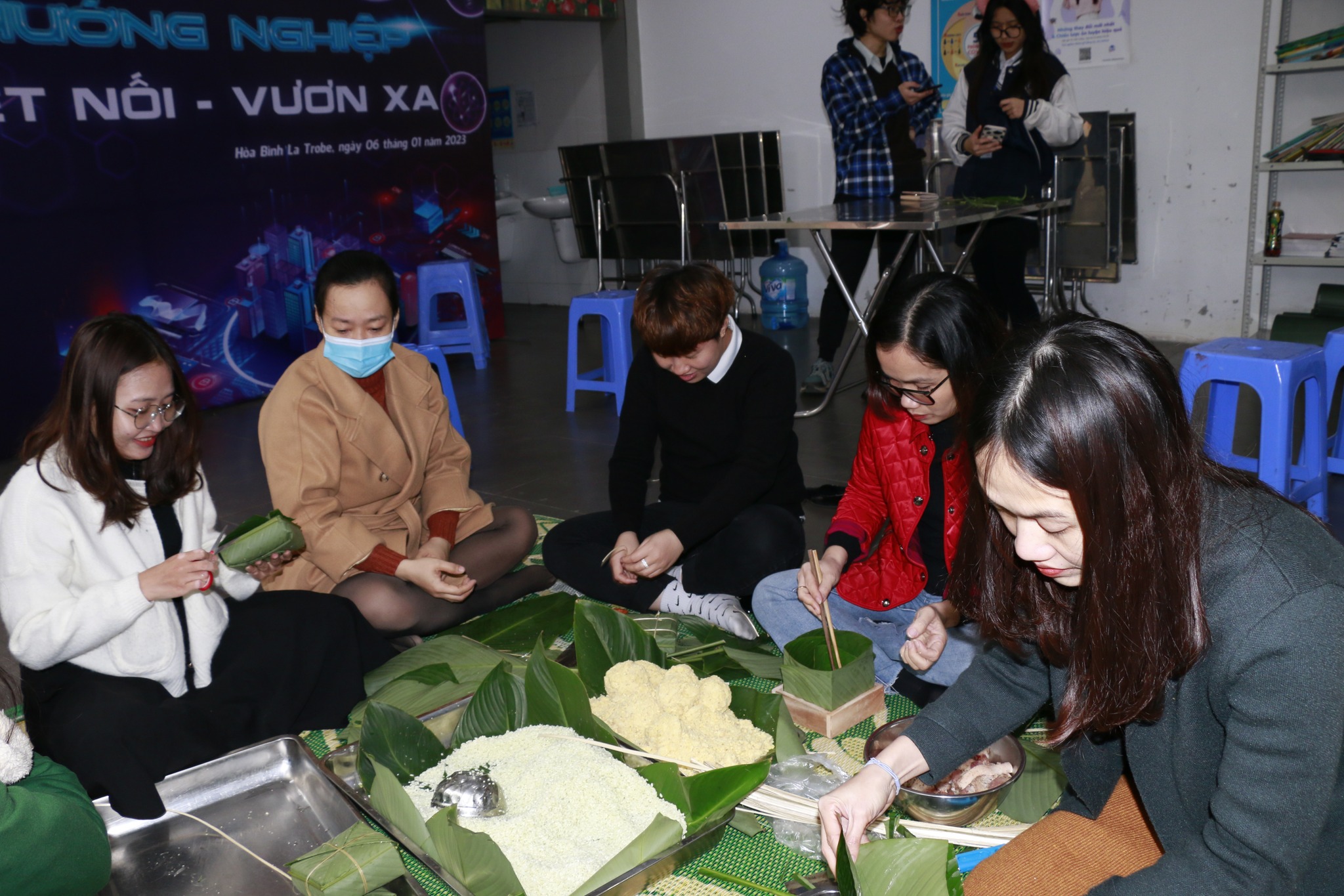 LaTrobers đã cùng được trải nghiệm cách gói bánh chưng, được tặng chữ bởi “ông đồ” của Hòa Bình La Trobe Hà Nội. Ngoài ra, LaTrobers còn được tham gia trò chơi dân gian và thưởng thức những món ăn đặc sắc đến từ gian hàng của các lớp.