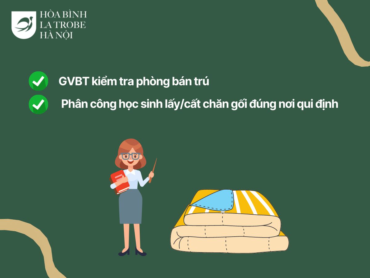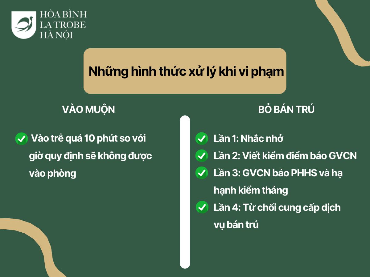 Chất lượng quản lý bán trú luôn là mối quan tâm của Hòa Bình - La Trobe - Hà Nội nhằm đảm bảo những điều kiện tốt nhất cho học sinh yên tâm học tập.