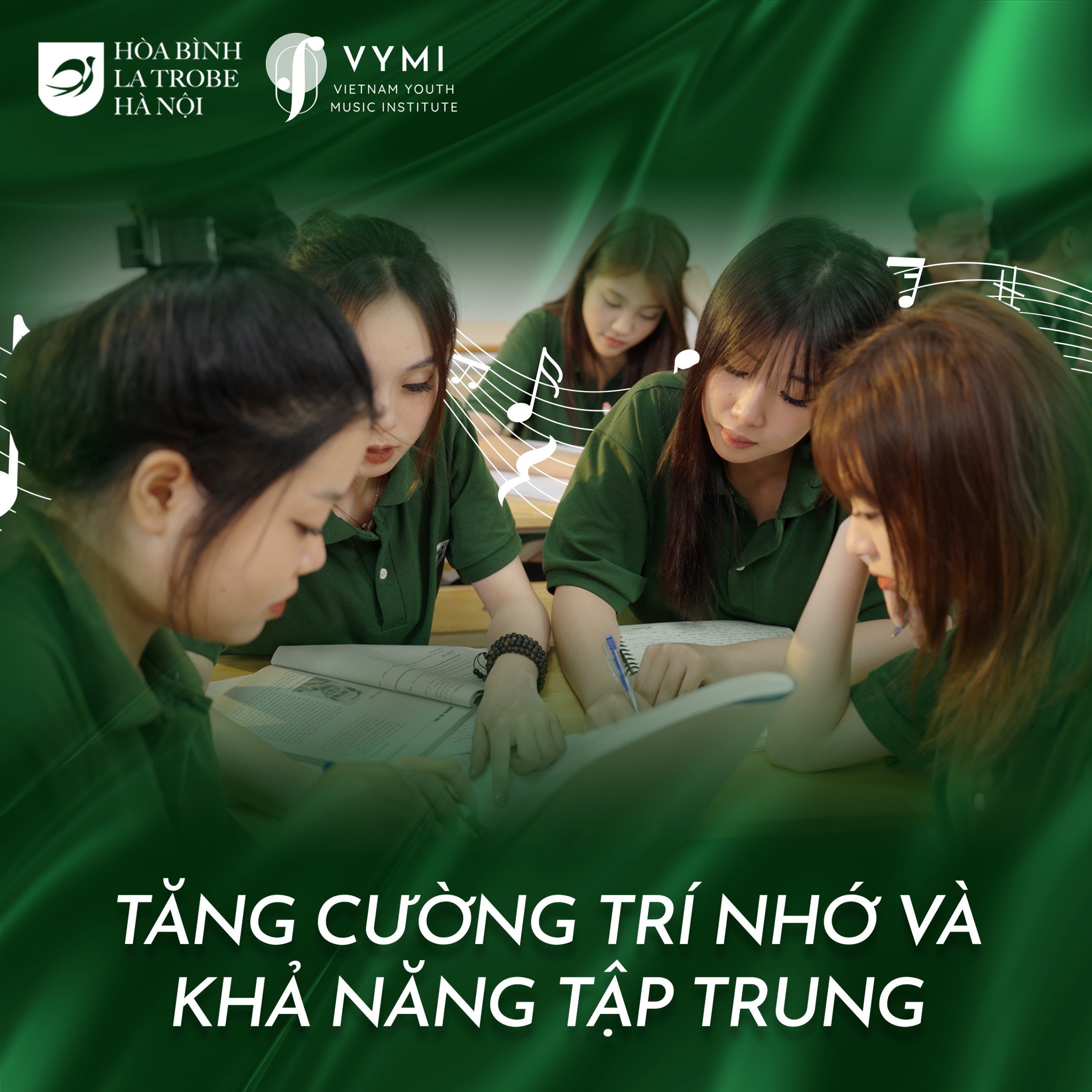 𝐓𝐚̆𝐧𝐠 𝐜𝐮̛𝐨̛̀𝐧𝐠 𝐭𝐫𝐢́ 𝐧𝐡𝐨̛́ 𝐯𝐚̀ 𝐤𝐡𝐚̉ 𝐧𝐚̆𝐧𝐠 𝐭𝐚̣̂𝐩 𝐭𝐫𝐮𝐧𝐠: Để chơi nhạc cụ, người học vừa phải tập trung đọc bản nhạc, vừa phải đặt ngón tay và/hoặc điều khiển hơi thở phù hợp. Điều này giúp não bộ phát triển khả năng thực hiện nhiều công việc cùng lúc và ghi nhớ thông tin lâu dài.