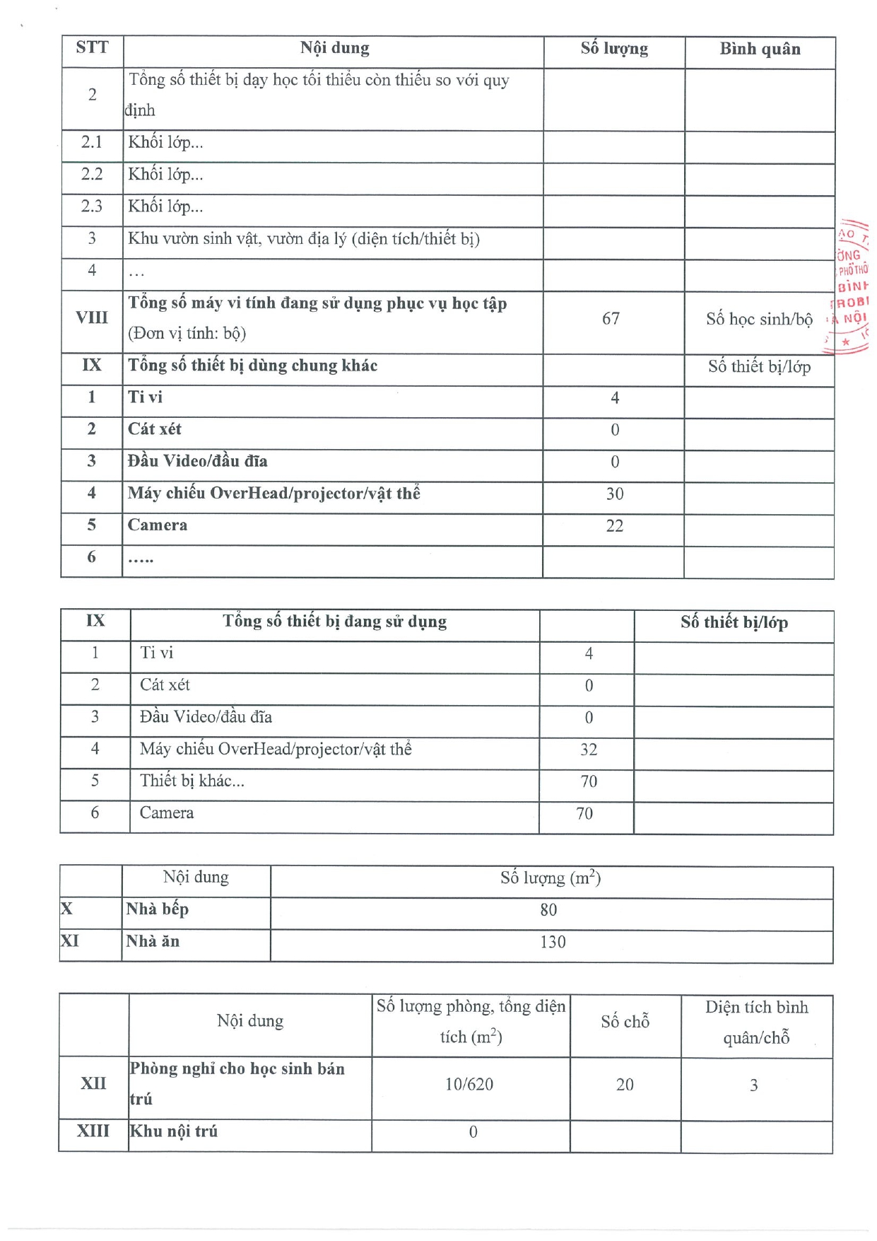 Thông báo công khai thông tin cơ sở vật chất của trường THPT Hòa Bình - La Trobe - Hà Nội, năm học 2022-2023