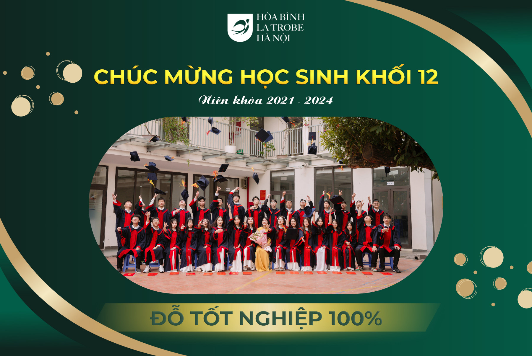 Năm học 2023-2024 khép lại với những thành công rực rỡ của thầy và trò trường THPT Hòa Bình – La Trobe – Hà Nội. Tiếp nối những thành tích nổi bật trong năm học, các em học sinh khối 12, niên khóa 2021-2024, đã hoàn thành xuất sắc kỳ thi tốt nghiệp THPT năm 2024 với kết quả: