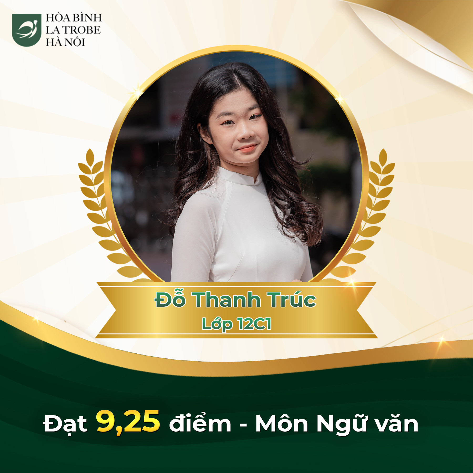 Ấn tượng các điểm số cao nhất các môn thi: Toán (9.2 điểm), Văn (9.25 điểm), Tiếng Anh (9.4 điểm), Lý (9 điểm), Sử (9 điểm), Địa lý (9.25 điểm), Giáo dục công dân (9.75 điểm).
