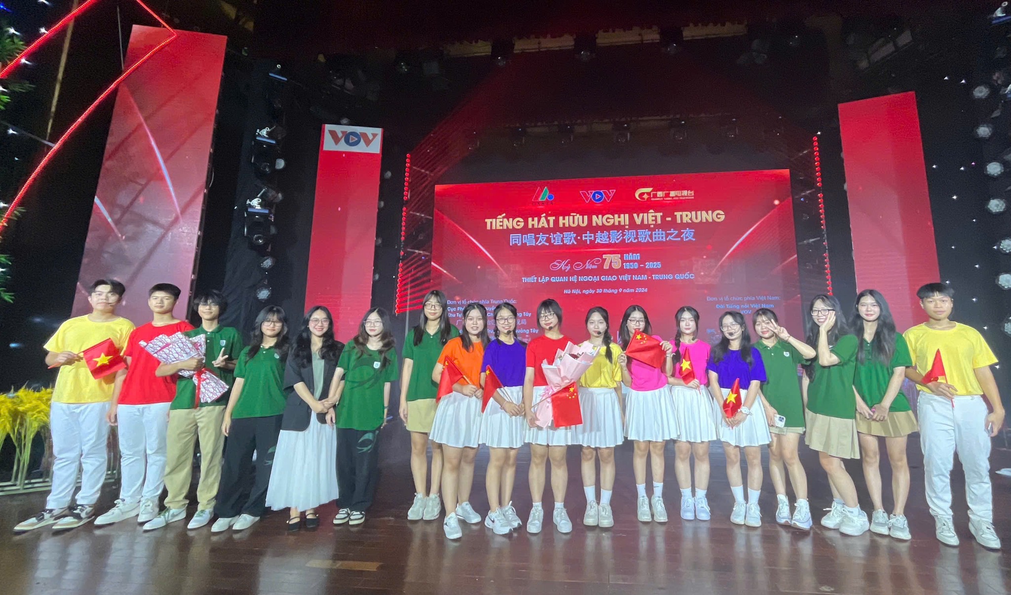 Trong không khí đầy hứng khởi, các bạn học sinh đã có cơ hội biểu diễn cùng các nghệ sĩ nổi tiếng đến từ hai quốc gia. Những giai điệu tuyệt vời vang lên từ sân khấu, hòa quyện với âm thanh rộn ràng của tiếng vỗ tay đã tạo nên một bầu không khí tràn đầy năng lượng và cảm xúc. Mỗi tiết mục không chỉ là sự thăng hoa của âm nhạc, mà còn mang trong mình thông điệp về sự giao thoa văn hóa, khơi gợi những giá trị truyền thống sâu sắc của hai đất nước.