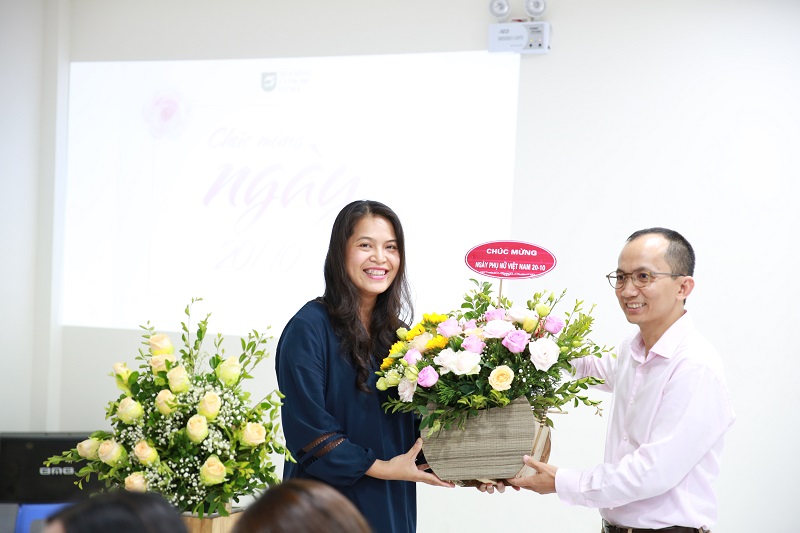 Cô Trần Thu Hiên - đại diện Ban lãnh đạo nhà trường đã có chia sẻ cảm nghĩ “Nhân ngày phụ nữ Việt Nam 20-10, xin được gửi lời chúc tới các đồng nghiệp nữ, không chỉ có một ngày hôm nay mà tất cả các ngày khác trong năm luôn luôn Xinh đẹp, Hạnh phúc và Thành công”.