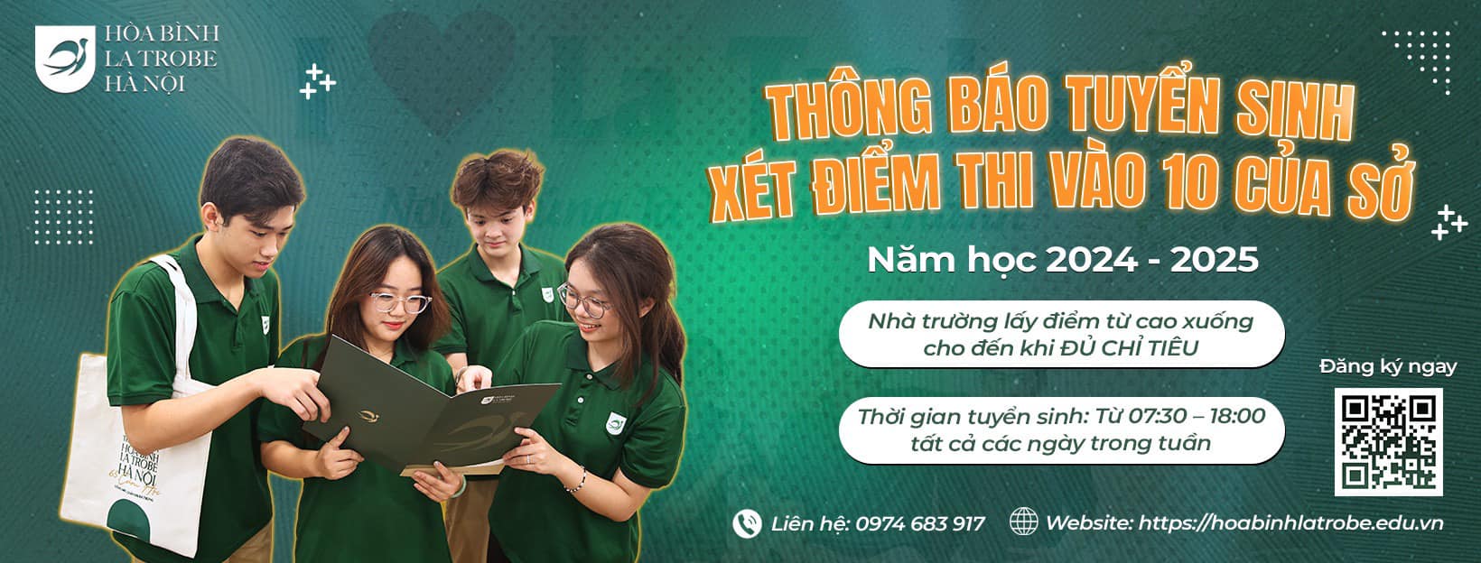 Trường THPT Hòa Bình – La Trobe – Hà Nội tiếp tục tuyển sinh lớp 10 năm học 2024 – 2025 theo phương thức: Xét tuyển điểm thi vào 10 của Sở.