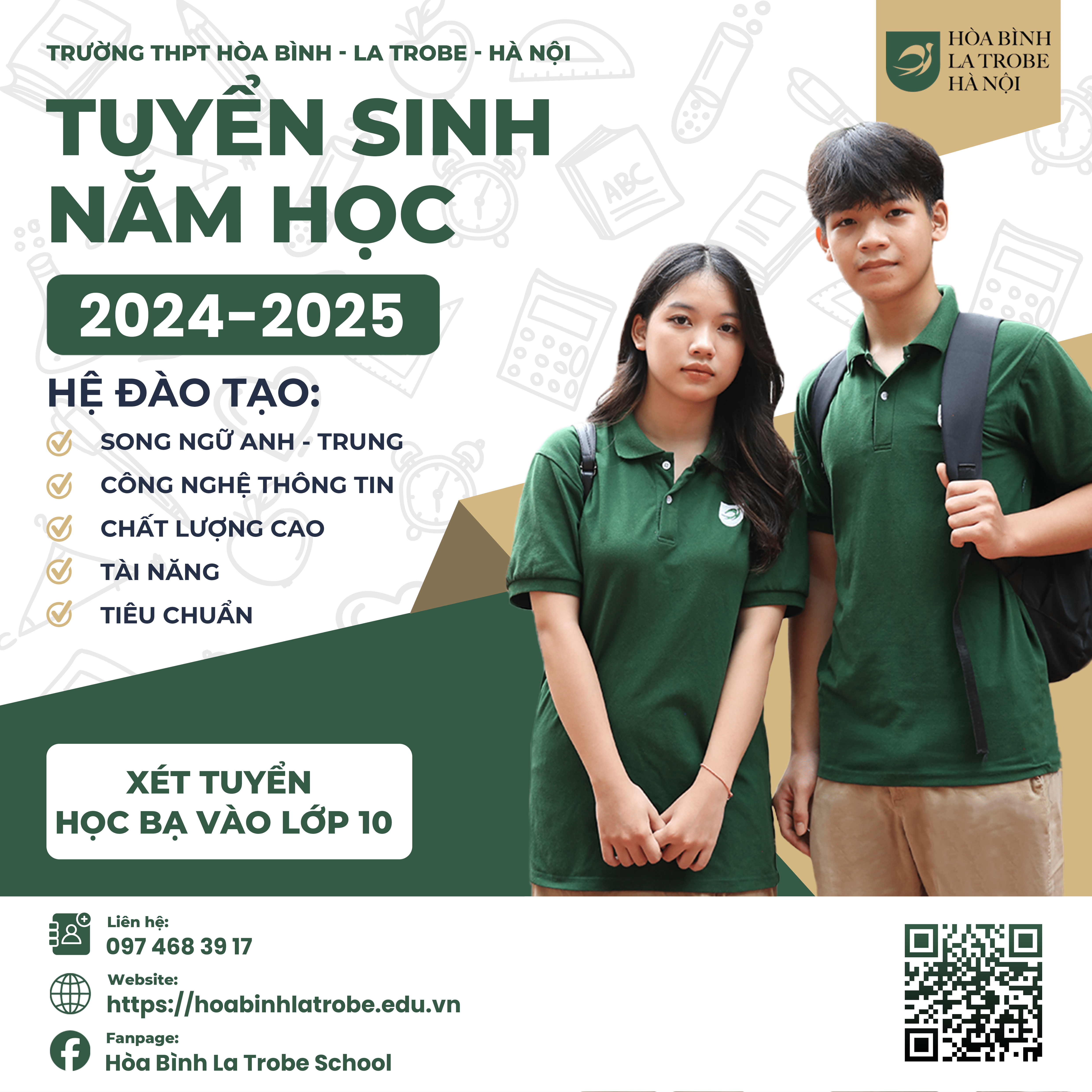 Đừng bỏ lỡ cơ hội trở thành một phần của cộng đồng học thuật tại Trường THPT Hòa Bình – La Trobe – Hà Nội! Đăng ký ngay: https://tuyensinhlop10.hoabinhlatrobe.edu.vn/