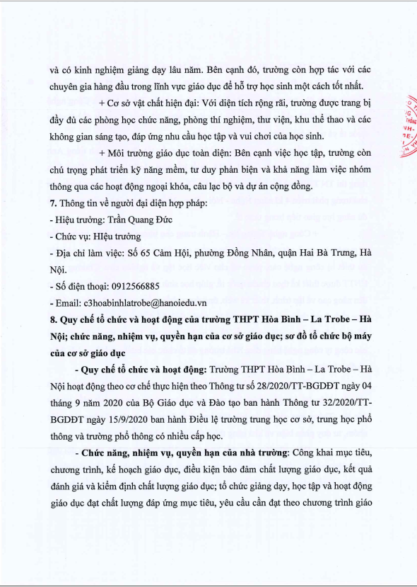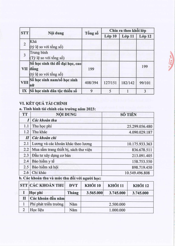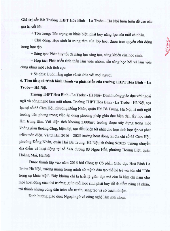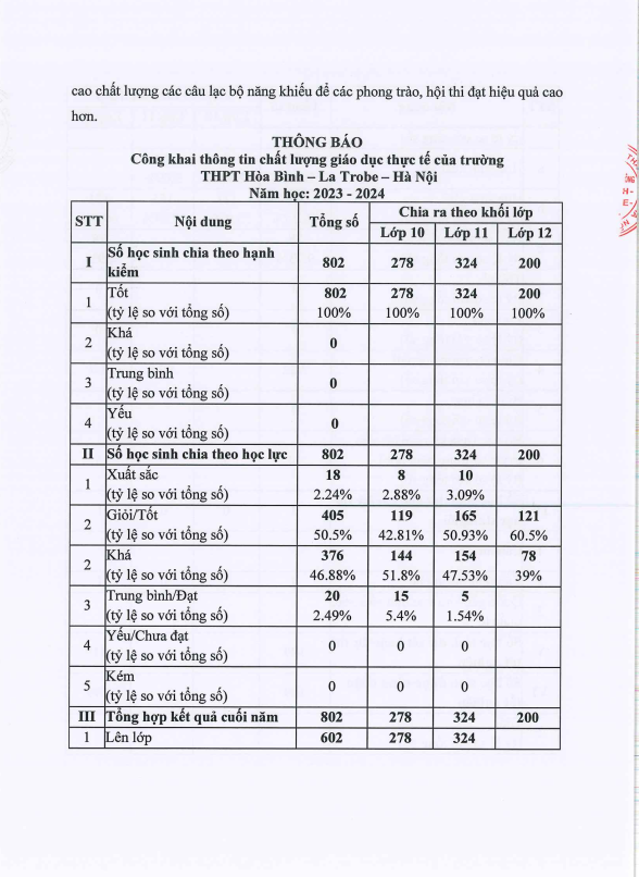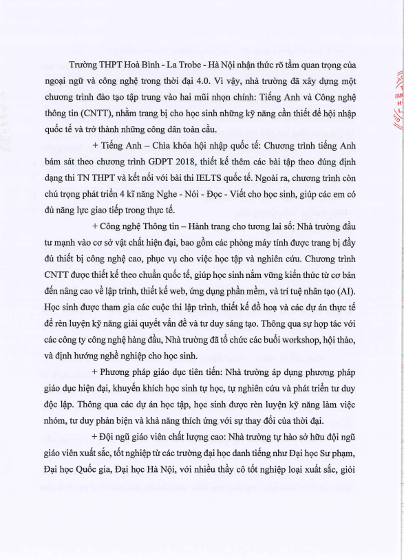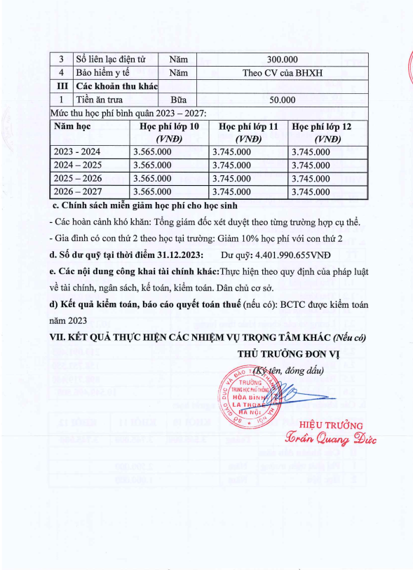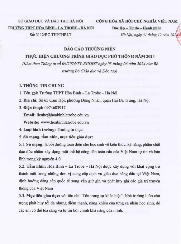 Thông báo công khai thu chi tài chính trường THPT Hòa Bình - La Trobe - Hà Nội, năm học 2024 theo Thông tư 09/2024/TT-BGDĐT ngày 03 tháng 06 năm 2024