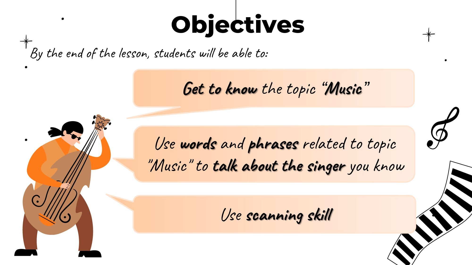 Học sinh được “khám phá” các từ vựng liên quan đến chủ đề “Music”, nhận biết cách phát âm, mặt chữ qua cả hai kỹ năng nghe và đọc. Đồng thời, sau khi nghe, học sinh được thực hành nhập vai vào các nhân vật trong đoạn hội thoại để luyện tập cách phát âm và cách dùng của từ mới một cách chính xác.