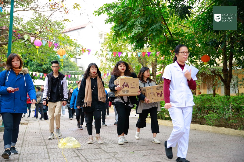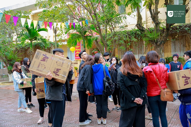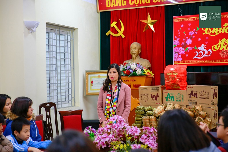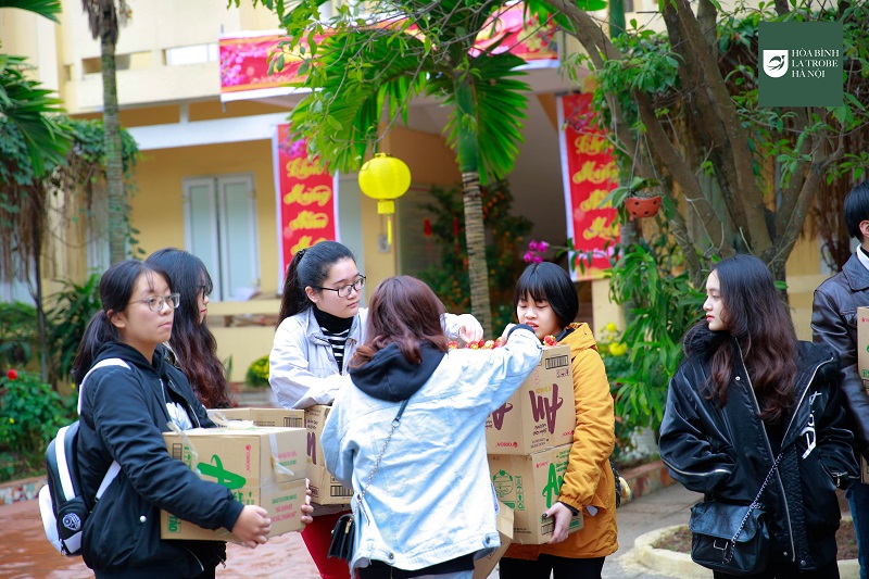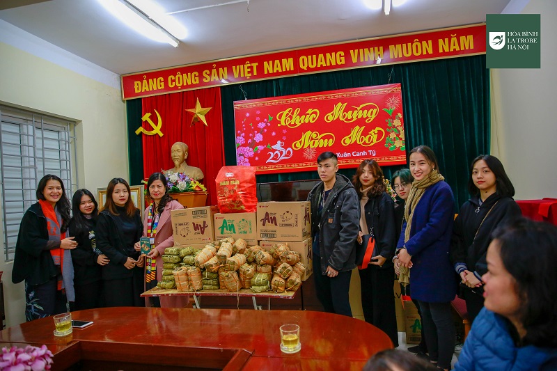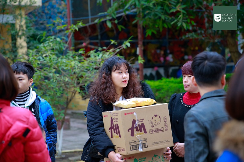 Tại chương trình thiện nguyện, các em học sinh đã cùng tham gia trao 160 phần quà Tết bao gồm bánh chưng, giò lụa, bánh kẹo… đến các đối tượng có hoàn cảnh đặc biệt, giúp các cụ già và em nhỏ có một cái Tết no ấm, đủ đầy hơn. Được biết, toàn bộ chi phí cho Chương trình thiện nguyện Xuân yêu thương 2020 do học sinh trường Hòa Bình – La Trobe – Hà Nội gây quỹ tại Hội chợ Xuân diễn ra sáng ngày 17/01/2020.