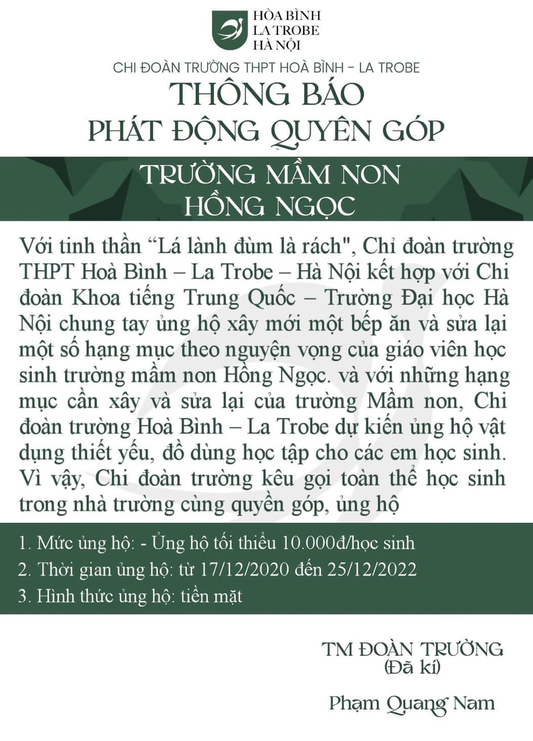 Vậy là một mùa đông nữa lại sắp tới. Với tinh thần “ Thương người như thể thương thân “ câu lạc bộ Truyền Thông - Youth Of LaTrobe mong rằng tất cả LaTrober sẽ cùng chung tay để giúp cho các thầy cô và các em ở trường mầm non Hồng Ngọc có một môi trường tốt hơn. Tựa như câu nói "Sống là cho đâu chỉ nhận riêng mình", YOL hy vọng sẽ nhận được sự chung tay của các bạn. Chúng mình rất mong nhận được thật nhiều sự quan tâm, những đóng góp, ủng hộ tới từ tất cả mọi người. Chúng ta hãy cùng nhau lan tỏa tấm lòng ấm áp của mình để đem lại tình yêu thương nhé!